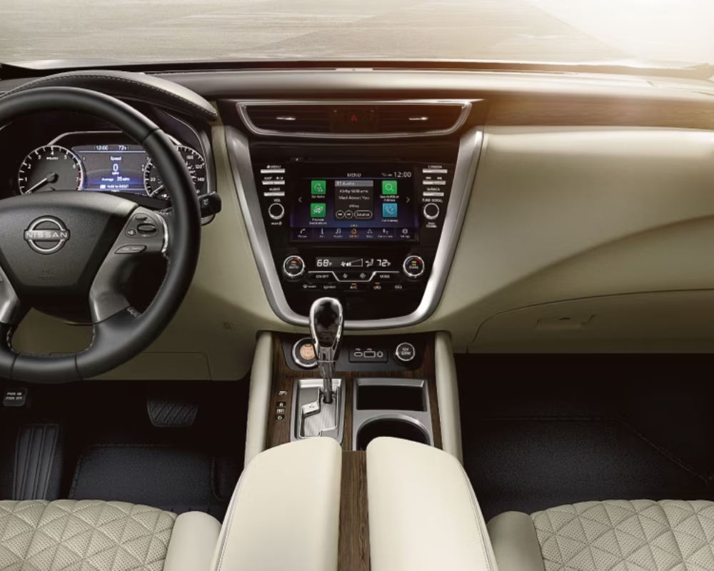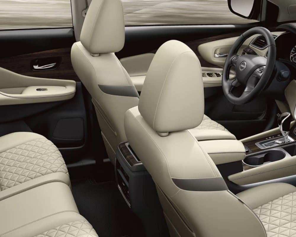 The Platinum is the top-tier trim in the 2024 Murano lineup, offering various premium features as standard. It delivers a luxurious driving experience with climate-controlled front seats, semi-aniline leather-appointed seats, and diamond-quilted inserts. The interior also features a power-telescoping steering column and dark wood-tone accents.