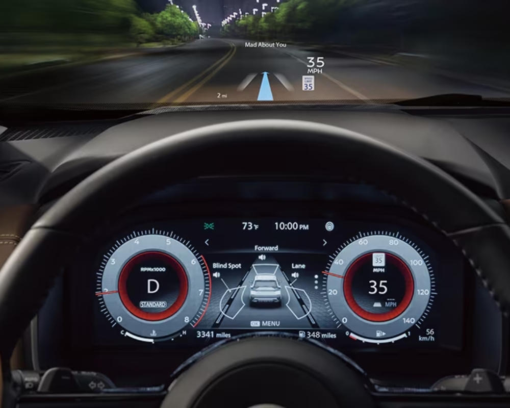 The 2024 Nissan Rogue technology features include two digital displays and connected tech options to make driving easier. It comes standard with an 8-inch touchscreen. You can also choose a bigger 12.3-inch touchscreen or a digital gauge cluster for more features. The Rogue offers a Head-Up Display, too, which shows important info on the windshield so you can keep your eyes on the road.